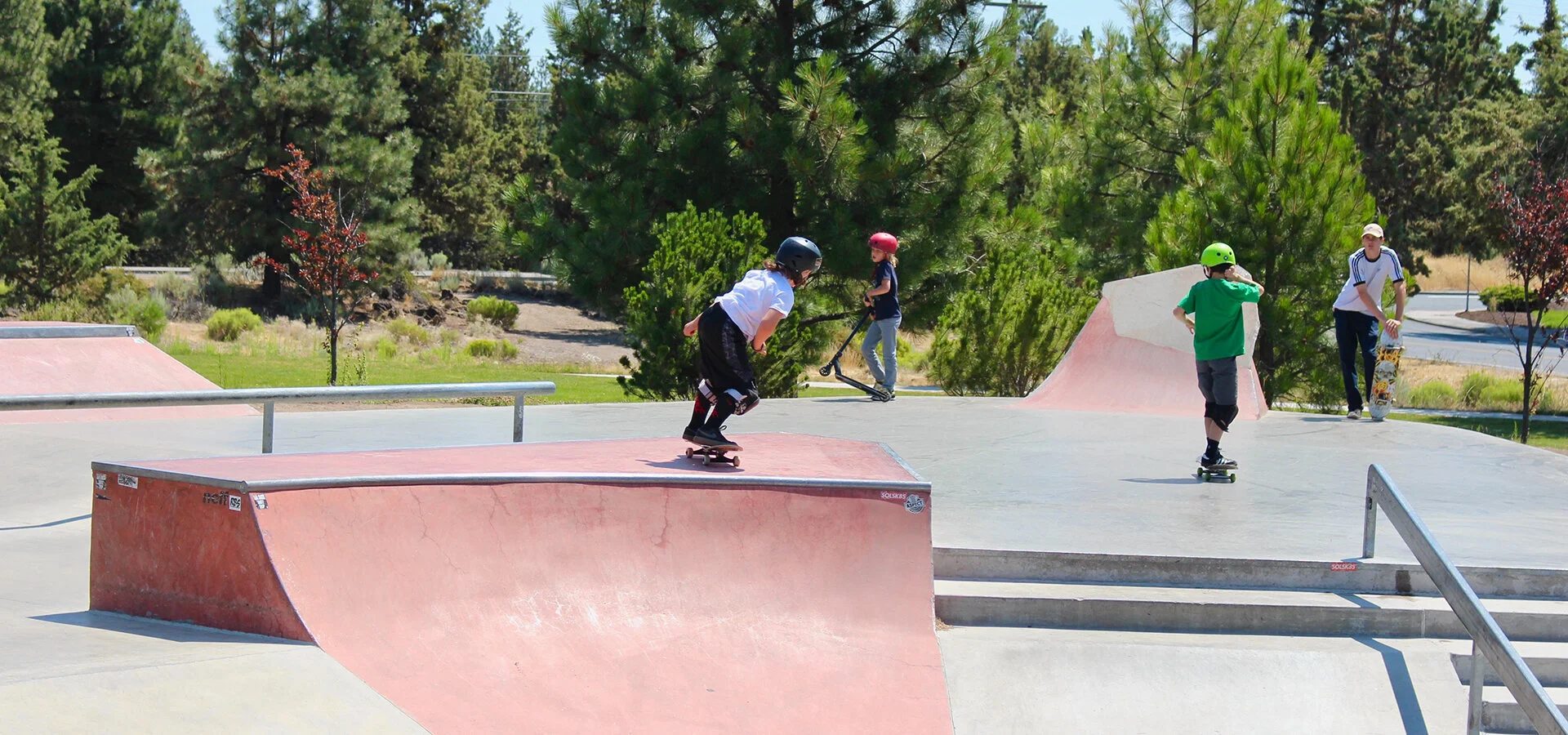 Ponderosa Park - a community park on 15th St. Includes 2 skateboard parks, softball fields, playground, Bend High's soccer field, an off leash dog park and more.